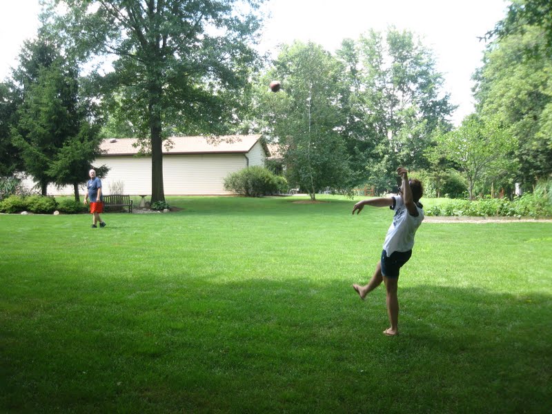 Dad and Katie were passing the football back and forth in the backyard, perhaps learning some final skills before her move to the big UK...you know, in case she ever needed to really know how to pass a football.